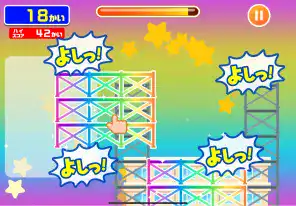 安全確認をしながら、足場を組み、制限時間内により高い建物を建設するパズルゲームです。建物を建設した後は、足場が解体され、足場のおかげで建物を完成させることができるということを学ぶことができます。